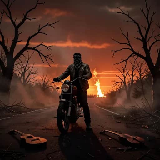 [Verse 1] Cuero negro Casco en la barra El polvo rojo Pegado en la cara Cruzo la línea Sin santo que me ampare La noche ruge Y el miedo se me aparte (hey) [Chorus] A quemarropa Me dispara el corazón Rueda contra roca Hierro Sangre y rebelión A quemarropa Voy directo al corazón Si la vida me provoca Yo respondo en explosión [Verse 2] Kilómetros Clavados en la espalda Dientes marcando La rabia en la garganta Rezo en silencio A un dios que se desarma Si caigo hoy Que me encuentren con el alma en llamas [Bridge] [Violin chillando sobre el riff] ¿Quién me va a frenar Si nací para el derrape? Si el camino es cárcel Rompo el alambre con mi escape (woah) [Chorus] A quemarropa Me dispara el corazón Rueda contra roca Hierro Sangre y rebelión A quemarropa Si la muerte da el tirón Yo me río en su boca Y acelero al horizonte en combustión