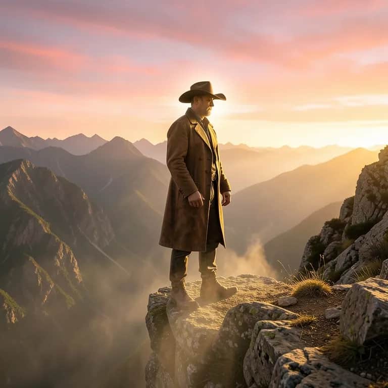 [Intro] High on the ridge where the wild winds blow, A mountain cowboy, silent shadows grow. [Verse 1] Weathered boots scuffed by the rocky trail, Stories in his eyes, a legacy to tell. Silent sentinel of the rugged peaks, Holding secrets that the mountain keeps. [Pre-Chorus] Through storms and snow, he rides alone, In the whisper of the wind, he's known. Old and rugged, with a heart so free, The mountain's child, as tall as the trees. [Chorus] Cowboy of the mountain, spirit untamed, Eyes like thunder, soul unclaimed. Standing tall where the eagles fly, Rugged and wise, 'neath the endless sky. [Verse 2] Echoes of cattle, stories of old, In his voice, the legends told. Craggy face etched by time's steady hand, Guardian of this rugged land. [Pre-Chorus] Through storms and snow, he rides alone, In the whisper of the wind, he's known. Old and rugged, with a heart so free, The mountain's child, as tall as the trees. [Chorus] Cowboy of the mountain, spirit untamed, Eyes like thunder, soul unclaimed. Standing tall where the eagles fly, Rugged and wise, 'neath the endless sky. [Bridge] Underneath the starry night, He keeps the fire burning bright. A legacy of strength and grace, In this wild, sacred place. [Outro] So here's to the cowboy, gray and bold, Stories of him will forever be told. Living free in the mountain domain, Old and rugged, free from chains.