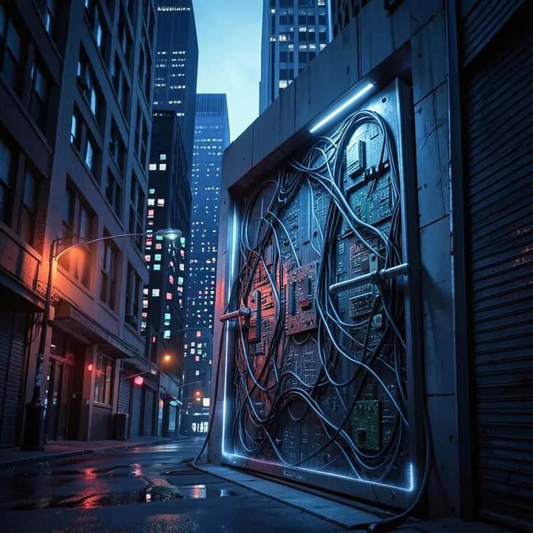 rap, Menacing trap beat with metallic, reverbed percussion and detuned bells, deep 808 glide, sparse plucks echoing in the sides. Male vocals, tight rhythmic flow; verses in a cool, technical pocket. Hook opens wider with layered ad-libs and pitched-down doubles. Subtle glitch FX and filtered delays on key words to sell the “digital knocking” concept, final chorus rides out with a hypnotic loop and riser tail.