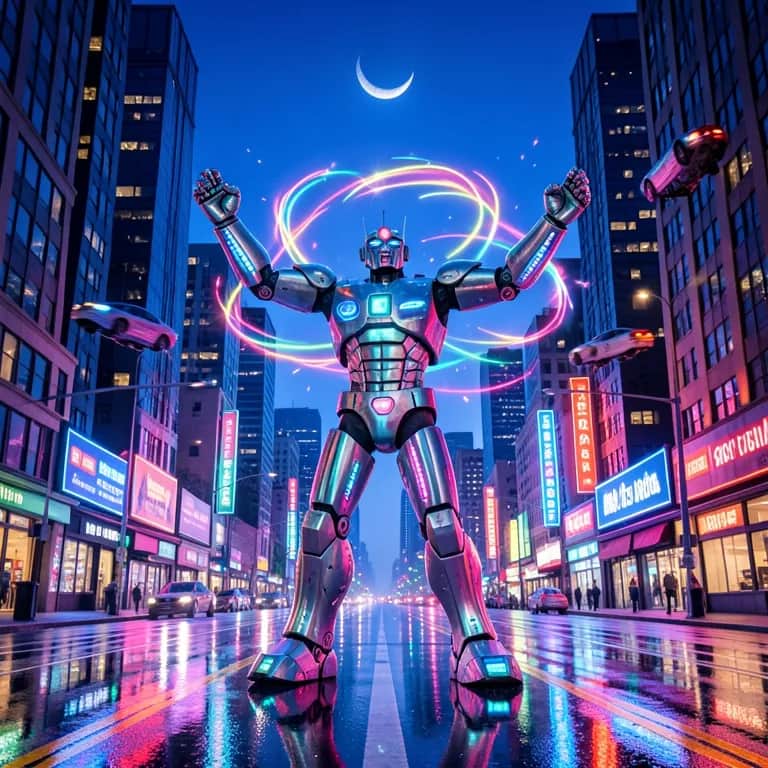 Disco, funk, retro futuristic, robotic vocals, rock, pop, bass, reggae, el guitar, trumpet, edm, chill, fun