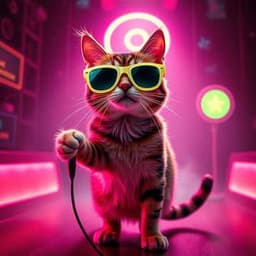 Upbeat dance pop with playful vocals, light synths, and a quirky meow sound effect