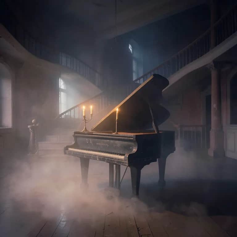 Minor key chamber ensemble. Aged pianoforte, driving cello ostinato, elegant strings, and a haunting flute line.