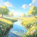 Indie-Folk, flute, guitar, scottish snare, SFX bird chirping, water splashing, sunny spring vibes, upbeat, clear vocals.