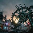 Neue deutsche Härte, Cold synths, iconic Heavy staccato guitars, Deep Bass, stomping Beat, deep male german voice, drum