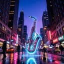 Electro dance pop, sax-driven club beat, punchy bass, minimal synths, heavy sax hook, bold female vocals
