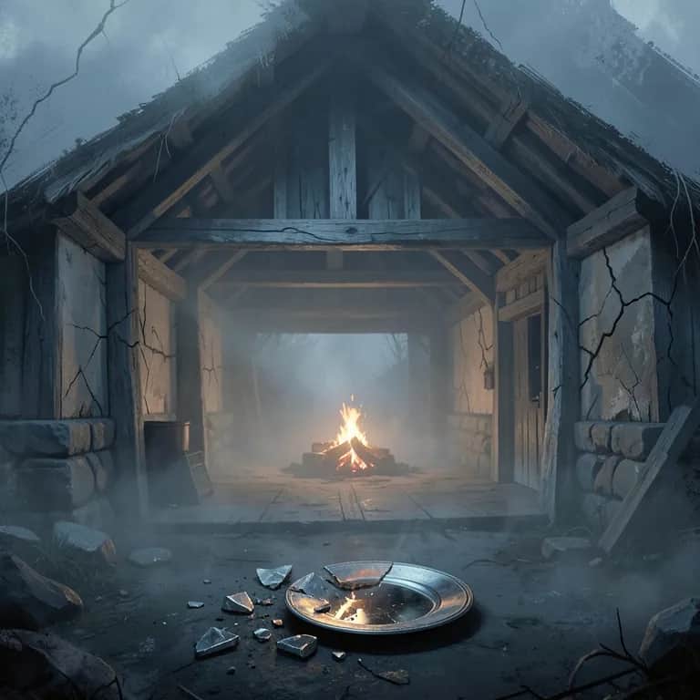 [Intro – šeptaný chorál] Night falls… Silent hall… Shadows breathe along the wall… Cold wind whispers through the bone… You are not… alone… [Verse I] In the dark where embers fade, Wood and stone their pact have made, Silent watchers, ancient keep, Guard the ones who dare to sleep. Plates of clay and fire-born skin, Hold the echoes deep within, When the frost begins to crawl, They remember… they recall. [Chorus – silný chorál] Hear the crack in silent night, Echo born of hidden might, Not a curse and not a sign, Just the voice of space and time. Still it strikes the mortal core, Like the drums of ancient war, In the dark the mind will see, What it fears… or wants to be. [Verse II] Stacked like shields in quiet keep, Resting where the old gods sleep, Pressure builds in unseen chains, Breaking silence, breaking veins. Cold descends on fragile form, Nature shifts without a storm, Tiny fracture, sudden cry, Like a raven passing by. [Chorus] Hear the crack in silent night, Echo born of hidden might, Not a curse and not a sign, Just the voice of space and time. Still it strikes the mortal core, Like the drums of ancient war, In the dark the mind will see, What it fears… or wants to be. [Bridge – rituální, pomalé bubny] No spirit walks, no shadow calls, No omen carved in broken walls, The fear you feel, the breath you hold, Is older than the tales we’re told. Fire cools and matter bends, Every silence always ends, What you hear is not the dead… But living echoes in your head. [Ritual Chant – opakování] Hróðr… nátt… skuggi… Hróðr… nátt… skuggi… (Glory… night… shadow…) [Final Chorus – mohutný, epický] Let it break and let it sound, You are safe on sacred ground, No dark omen, no unseen, Only night and what has been. Raise your breath and calm your sight, You have faced the silent night, What has cracked will fade away… You remain to see the day. [Outro – tichý chorál] Night falls… Silence calls… Nothing waits… Behind your walls…