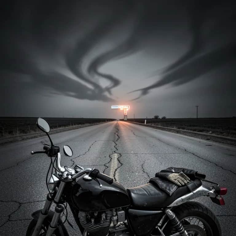 ... [(Verse 1)] Der Himmel hing tief wie ’n alter Fluch Der Motor mein Herz, das nach Erlösung sucht CB flüstert leise, sonst war da nichts Nur Schatten im Tank und kein echtes Licht Dann standest du da im flackernden Schein Rasthof verloren, doch so verdammt rein Staub auf der Haut, doch dein Blick war klar Wie ein Versprechen, das ich nie hatte – bis du da warst [(Pre-Chorus)] Du sagtest nichts, doch ich hab’s gespürt Dass diese Nacht uns beide verführt [(Chorus)] Zwischen Rost und rauem Leben Hast du Liebe in mich gelegt Wie ein Feuer im kalten Motor Das noch lange nach dir schlägt Keine Zukunft, keine Ketten Nur ein Jetzt, das ewig scheint Und ich schwör bei all den Straßen Dass mein Herz noch deinen Namen schreit [(Verse 2)] Du lagst neben mir auf zerriss’nem Sitz Und hast gelacht wie ein Sonnenblitz Deine Finger auf meiner müden Haut Haben mir mehr als mein Leben vertraut Wir teilten die Nacht, den Schmerz und den Wind Zwei kaputte Seelen, doch blind wie ein Kind Ich hab dir von Dämonen und Narben erzählt Und du hast mich geküsst, als ob nichts davon zählt (Pre-Chorus) Der Highway zog uns tiefer hinein Und ich wollt nur noch bei dir sein [(Chorus)] Zwischen Rost und rauem Leben Hast du Liebe in mich gelegt Wie ein Feuer im kalten Motor Das noch lange nach dir schlägt Keine Zukunft, keine Ketten Nur ein Jetzt, das ewig scheint Und ich schwör bei all den Straßen Dass mein Herz noch deinen Namen schreit [(Bridge)] Doch jeder Traum hat ein rostiges Ende Und jede Strecke zerbricht irgendwann Du hast nur leise nach draußen gezeigt „Hier ist mein Ziel… halt bitte an“ Ich hielt den Atem, hielt dich fest Doch wir wussten beide, was kommen lässt Ein letzter Kuss, der nach Ewigkeit schmeckt Und ein Abschied, der dich im Innern zerfleckt [(Outro Chorus – gebrochen, tief)] Zwischen Rost und rauem Leben Trag ich dich noch immer mit Wie ein Lied aus alten Tagen Das nie ganz aus meinem Herzen tritt Keine Zukunft, keine Ketten Doch dein Schatten bleibt bei mir Und auf tausend leeren Highways Such ich weiter nur nach dir [(Outro)] Der Motor läuft… doch ich steh still Weil jede Meile zurück zu dir will… ...