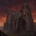 metal, Cinematic gothic doom metal with baritone male vocals: towering toms, detuned guitars in slow, crushing chords, and a mournful choir in the distance. Verses sit in a low, gravelly spoken-melodic register over organ swells and distant bells; chorus explodes into loud, soaring melody with stacked male harmonies and sustained power chords. Strings and timpani add drama in the bridge, ending on a huge, lingering final chord that fades into reverb., vocal, deep, gothic doom, loud