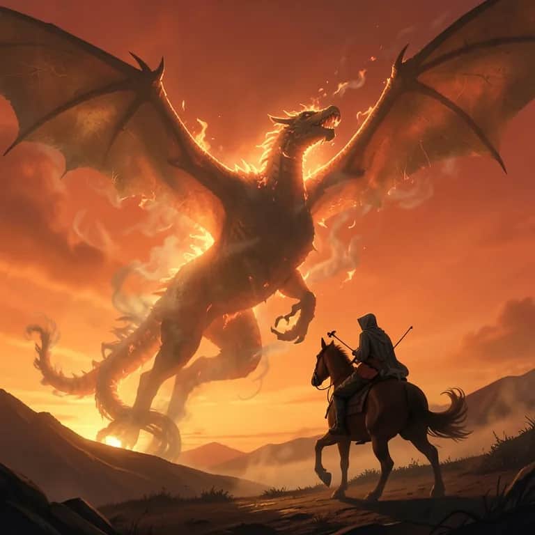 [Verse 1] They came on wings of fire across the dawn-lit sky, Smoke like rivers, eyes like storms, talons tearing high. Empires bowed and cities burned, men fled where they stood, Dragons claimed the world in flame, bending fate and blood. [Verse 2] Then came the Children of Light, on horses fierce and fast, Riding through the shadowed peaks to fight the ancient past. Jumping Jack with boots of power, leapt where dragons feared, Kicking wyverns from the walls, the legends reappeared. [Verse 3] Green Meadow saw the first free fight, armies on the plain, Wyverns screamed and harpoons roared, the Babe held fast through rain. Donna steered, David cursed, engines burning low, Richard and Mark swung steel with fury none could slow. The sky turned black with claws and wings, the air a roaring wall, Till David drove the beasts away and the survivors stood tall. [Verse 4] Richard and Mark rode through the smoke, blade and steel in hand, Against dragon men who swarmed like storms across the land. Each brother watched the other’s back, none could break their line, While Andrew held the serpent men at Hover’s narrow spine. Together they stood fierce and proud, the dragon host thrown back, Their names would ride on whispered winds, in every battle track. [Chorus] Fables in fire, legends in the wind, Songs of the bold, of the brave, of the sin. From wyverns above to the rivers below, Heroes rose where the fire did flow. And every child who hears the tale will know, How the world once trembled under fire’s glow. [Verse 5] Then came Donna, sailing west, secrets clutched in hand, Trading silk and counting gold while scheming evermore. Through eastern courts of Lim’s domain, she plotted every step, And one moonless night she stole the secrets that he kept. The Baywhar Babe took wing with her, and vanished from the sky, Even the dragon rose too late, to chase but could not fly. [Verse 6] Across the lands, the stories grew, whispered in the night, Of rebels, spies, and heroes bold, who faced the dragon’s might. Of Jumping Jack, the boy who leapt, and Donna stealing flame, Of engines, harpoons, shattered steel, and the Stormcastles’ name. The dragons ruled the world for years, but never without fear, For legends rise in whispered tones, and heroes persevere. [Final Chorus] Fables in fire, legends in the wind, Songs of the bold, of the brave, of the sin. From dragons above to the men below, Through smoke, through steel, through blood and snow. And every child who hears the tale will know, How the world once trembled under fire’s glow.