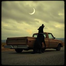 [Verse 1] Old black dog’s been runnin’ my trail, Howlin’ at my shadow, raisin’ hell, Four bald tires on this rusted rig, Smell of whiskey and a cigarette’s twig. [Prechorus] The road’s long, the night’s too wide, And I’ve got the devil ridin’ inside. [Chorus] Black dog barkin’, I can’t shake free, Growlin’ deep in the dark of me, Truck wheels hummin’, the moon won’t rest, Chasin’ my sins, got a weight on my chest. [Verse 2] She had eyes like fire, lips like wine, Tangled in her sheets, lost track of time, But love don’t linger when the sun comes up, Now it’s diesel and dust in a beat-up truck. [Bridge] Every mile’s a memory I can’t forget, Her touch still lingers, I’m payin’ the debt, The black dog laughs as the gears grind on, Another night falls, another love gone. [Chorus] Black dog barkin’, I can’t shake free, Growlin’ deep in the dark of me, Truck wheels hummin’, the moon won’t rest, Chasin’ my sins, got a weight on my chest.