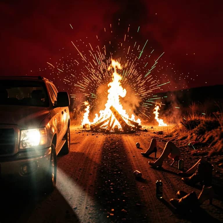 Verse 1 Engines scream, tires claw the dirt, Girls hangin’ on as we flirt with hurt. Skies blaze red from the bonfire’s rage, Truck bed slidin’ like a beast uncaged. Shotguns barkin’, sparks in the night, Moon’s a witness to our reckless fight. Rules? We crush ’em, laws? We burn ’em all, Livin’ fast, livin’ loud, we’ll never fall. ⸻ Pre-Chorus No brakes, no mercy, chaos in our veins, Every shot, every mile, breakin’ all chains. Blood-pumped, fire-lit, hearts runnin’ free, Outlaws laughin’ at authority. ⸻ Chorus We ride hard, live wild, never slowin’ down, Girls, beer, and fire, we own this town. Tires spin, engines roar, sparks hit the sky, Ain’t no law alive gonna tell us why. Untamed, unbroken, crossin’ every line, Burnin’ fast, burnin’ bright, this life is mine. Hands up, scream it loud, let the world know our name, Chaos unleashed, and we play no games. ⸻ Verse 2 Cornfields shredded under midnight steel, Truck tails slidin’, we own the thrill. Whiskey-burnt lips, smoke curlin’ high, Girls screamin’ loud, beer bottles fly. Fences crumpled, snowbanks tossed aside, Shots fired, hearts racin’, nowhere to hide. Every night’s a war, every mile a crime, No brakes, no limits, lost count of time. ⸻ Bridge Engines redlined, shadows in our eyes, Ash on boots, dirt roads never lie. Ghosts on the highway, kings without a crown, Chaos our empire, we own this town. ⸻ Final Chorus We ride hard, live wild, never slowin’ down, Girls, beer, and fire, we own this town. Tires spin, engines roar, sparks hit the sky, Ain’t no law alive gonna tell us why. Untamed, unbroken, crossin’ every line, Burnin’ fast, burnin’ bright, this life is mine. Hands up, scream it loud, let the world know our name, Chaos unleashed, and we play no games. ⸻ Outro Dust swirls, fire fades, but the scars remain, Tires shredded, hearts savage, we own the pain. Every dirt road, every wild sign, Still screams the nights of that outlaw life of mine.