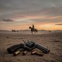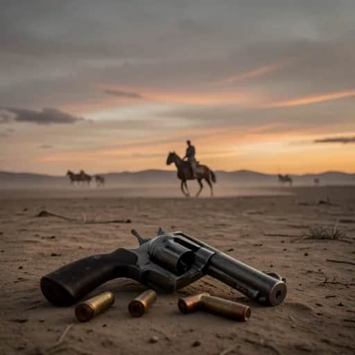 "SEIS BALAS Y UN REVOLVER" (Dark Country Rock - Neo Western Cinematico | Ritmo Acelerado y Potente) (INTRODUCCIÓN NARRADA) (Voz cargada de intensidad, con eco rápido y contundente; se oyen galopes de caballo al fondo) ¡El desierto no espera! Tres días corriendo, con el fuego del sol en mi espalda y el polvo en mis pulmones. Cien lobos me siguen a sus anchas – pero ellos no saben que corren hacia su fin. ¡Soy la tormenta que viene por ellos! (Riff de guitarra eléctrica agresivo y rápido arranca de golpe; batería a toda marcha, bajo contundente y steel guitar con ritmos vibrantes) (ESTROFA 1) (Compás rápido, rítmica como un galope desenfrenado) El sol se ahoga ¡ya! en el polvo del camino Botas rotas golpean suelo de piedra Mano en el cuero, frío como el infierno TENGO 6 BALAS Y UN REVOLVER Viento grita maldades al oído No hay escapatoria – ¡pero yo no huyo! (ESTROFA 2) (Ritmo aún más enérgico, guitarras con distorsión potente) Ojos brillantes entre cardos secos Aullidos cortan el cielo encendido PERO AFUERA HAY CIEN LOBOS QUE QUIEREN MI CABEZA No busco piedad – ¡nadie me salvará! Solo mi sombra y el eco del galope Cada latido es un grito de guerra (ESTRENO) (Coro potente, voces rasposas y contundentes) ¡NO ME RENDIRÉ! – aunque la noche se abalance ¡TODOS VAN A CAER! – bajo mi fuego implacable SEIS BALAS EN EL TAMBOR – ¡CADA UNA CON SU OBJETIVO! ¡ESTE ES MI COMIENZO O MI GLORIOSO FINAL! (PUENTE) (Riff de guitarra solista rápido y agresivo; batería con redobles potentes) El revolver canta con un estallido gutural Lobos al suelo – ¡polvo y metal! Aún quedan balas, aún quedan enemigos ¡NO HAY VUELTA ATRÁS EN ESTA CARRERA INFERNAL! (ESTRENO Repetición) (Intensidad máxima, coro amplificado con voces de fondo) ¡NO ME RENDIRÉ! – aunque la noche se abalance ¡TODOS VAN A CAER! – bajo mi fuego implacable SEIS BALAS EN EL TAMBOR – ¡CADA UNA CON SU OBJETIVO! ¡ESTE ES MI COMIENZO O MI GLORIOSO FINAL! (FINAL NARRADA) (Música sigue a toda marcha, luego se corta de golpe salvo un último redoble potente) ¡ÚLTIMO DISPARO! ¡ÚLTIMO LOBO EN PIE! Las seis balas cumplieron su ley – el desierto está pintado de rojo y gloria. ¡Nadie más se atreverá a seguir mis pasos! ¡SOY EL QUE SE ENFRENTÓ A CIEN LOBO Y NO SE RENDIÓ! (Un riff final de guitarra eléctrica se desata y se corta bruscamente, dejando solo el eco de un galope que se aleja a toda velocidad)