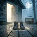 [Intro] A doorway glows with a whispered tune, dust motes drift in a sleepy room. Footsteps slow on a wooden floor, a quiet can-can of chores in bloom. [Verse] An old hat sits warm upon his brow, the plaid unfolds like a memory’s vow. Pocket deep where secrets like to hide, boots trace stories in the faded light. Washing drums hum a patient refrain, shirts and stains like stars in a plain. Shelves bow under the weight of dawn, a breeze and breath of a life nongone. He stands between the noise and doors, where quiet hums of metal chorus pours. [Chorus] Hold the moment, don’t let it fade, in this doorway where meanings cascade. Light spills soft from the hallway line, he wears a calm that never tires. Hold the moment, let it stay, the present learns to breathe and sway. In the hush, his hands find their tune, in the rhythm of a laundry moon. [Verse] Clutter stacks like a shoreline of days, a map of hours in a cupboard's maze. The washing machine keeps time with a sigh, linted confetti drifting through the sky. Right arm down, left hand in his pocket’s keep, he counts the breaths that the room can keep. A ladder of shelves, a stack of pleas, tools and towels rustle in the breeze. He wears his quiet like a second skin, a gateway where dawn slides back in. [Chorus] Hold the moment, don’t let it fade, in this doorway where meanings cascade. Light spills soft from the hallway line, he wears a calm that never tires. Hold the moment, let it stay, the present learns to breathe and sway. In the hush, his hands find their tune, in the rhythm of a laundry moon. [Bridge] A thrum of distant life behind the glass, a kettle’s whistle leaking from the past. He steps back, zeroed in on what remains, the simple throne of work and rain. A silhouette in plaid, a weathered friend, the kitchen hums a script that won’t amend. He glances over, a quiet nod to time, a story etched in copper and lime. [Chorus] Hold the moment, don’t let it fade, in this doorway where meanings cascade. Light spills soft from the hallway line, he wears a calm that never tires. Hold the moment, let it stay, the present learns to breathe and sway. In the hush, his hands find their tune, in the rhythm of a laundry moon. [Outro] Doorway dims, but the pulse remains, a doorframe song through the cluttered plains. And every breath keeps the scene in tune, the cowboy clock beneath a wandering moon.