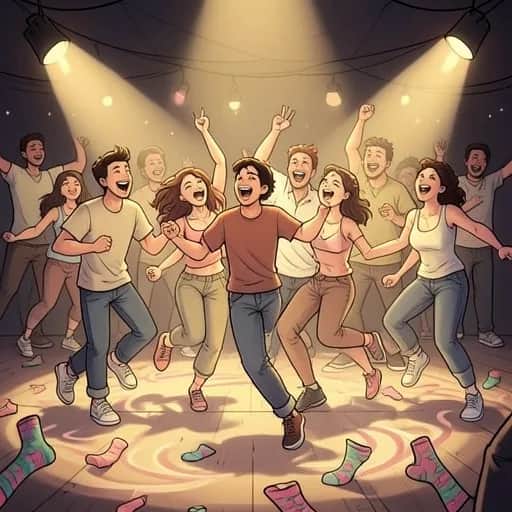 Yo, yo! Zlot rusza dziś! Puszyści pozytywni – ogień i błysk! Zwrotka 1 Na parkiecie Kris napakowany stoi, Mięśnie grają lepiej niż DJ w przeboju! Choć wygląda groźnie – to złote serce ma, Jak przytuli mocno, to aż wiruje świat! Piotrek wchodzi – skarpet vibe na sto, Kolorowe, seksji – robią wielkie show! Natalia patrzy, mówi: „O mój los, Te skarpety skradły serce – wznoszę toast!” Refren (x2) Hej, hej – ta noc należy do nas! Tańczy cały zlot, wiruje każdy włos! Puszyści pozytywni – serca biją tak, Disco polo gra i płonie w nas ten żar!Zwrotka 2 Natalia śmieje się, króliczka tropi w krzak, „Uciekaj szybciej!” – to zabawy smak. Wszyscy klaszczą, rytm już niesie wiatr, Tu radości nie zatrzyma żaden świat! Kozica Werka – tak ją nazwali, Arek z Darkiem plan już doskonali: „Skrzypi trochę? To oliwa w ruch!” Śmiech wybucha – słychać go za dwóch!
