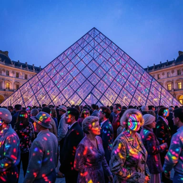 [Verse 1] – [male 1] Ils arrivent en cohorte, Le pas vif, l’œil distrait, Chacun espère être “le premier” … à faire la même photo que les autres. [Verse 2] – [female 1] Y a le timide qui s’pousse, tout voit, Et celui qui dit “mouais, j’préfère Monet”, sans savoir lequel c’est, évidemment. [Chorus 1] – [male 1 & female 1] Oh, la grande humanité qui défile, Qui piétine, qui soupire, qui vacille, La grande humanité qui se presse, Qui se perd, qui stresse — mais progresse ! [Bridge] Y a ceux qui passent sans voir, Ceux qui voient sans comprendre, Ceux qui comprennent sans vouloir… et ceux qui veulent juste aller aux toilettes. [Chorus] – [4 singers] Et nous, on garde, On regarde… Comme deux phares dans la tempête humaine. C’est pour eux qu’on reste, Qu’on répète : “Pas trop près, s’il vous plaît… merci !” (beaucoup) Et quand la salle se vide enfin, (enfin) On respire, on s’dit “c’est la fin”... (La fin) Mais non. Encore un groupe. Encore un monde. (Univers) Encore la grande humanité qui défile… (humanité) Et on sourit. m (smile) Presque. [End]