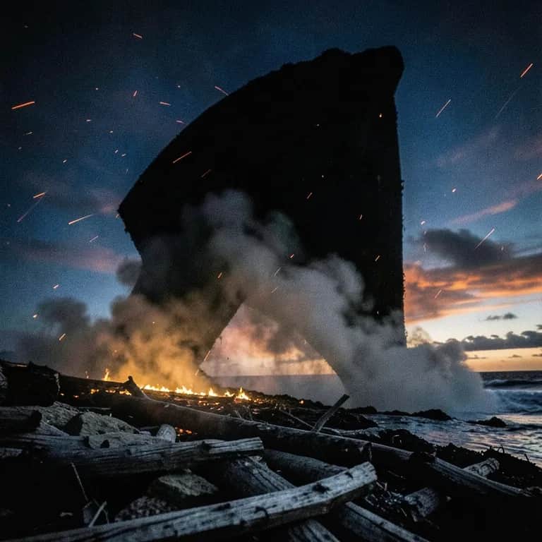 [Intro – Low chant, ominous] Black sky… no stars… no flame… Black sky… don’t speak their name… [Verse 1] We came on winds that carried none No moon to mark, no rising sun Just distant fire along the shore And guns that thundered evermore The coastline burned in broken lines A kingdom fighting for its time No signal clear, no guiding light— Just war alive within the night [Pre-Chorus] No horizon, no command— Only shadows over land… [Chorus – Driving shanty] Heave away—into the fire! Engines scream and cables wire Black skies over Albion— Stand fast—steady ranks—hold on! Heave away—no turning back! Steel your hearts against the black Through the dark, through ash and flame— We will not forget our name! [Verse 2] No wings to beat, no cry to warn No shape against the storm was torn But something moved against the wind— Like night itself was closing in A whisper passed above the mast Like canvas pulling tight and fast Not falling wild—not cast aside— But choosing where the dark would glide [Pre-Chorus] “Look above!”—too late, too near— “They’re not falling… they can steer!” [Chorus – Harder, faster] Heave away—into the fire! Cut the lines and pull them higher! Black skies over Albion— Stand fast—steady ranks—hold on! Heave away—drive them back! Something rides the open black! Through the dark, through ash and flame— We fight what does not play our game [Bridge] They came down hard—no scream, no cry— Just sudden weight from out the sky Claws on wood and iron rail Shapes that should not ride the gale They hit the deck—they did not break— They rose as if the fall’s a wake Of something built to strike and cling— Not beast… not bird… not anything [Break] [Everything drops—tight, focused] A whisper cuts through smoke and flame— Amanda: “Hold steady… I’ve got its aim.” One shape drifts against the fire Membrane stretched like torn-up wire Not falling fast—not wild, not blind— It bends the dark… it chooses line Crack. It folds mid-air—its glide undone— A broken arc against the gun It slams the deck with splintered sound Claws still scraping as it’s down No wings that beat—just skin stretched wide Like something meant to fall and glide Too many joints, too long a frame A hunter built without a name Its jaw unhinges—far too wide— A breath that rasps but never cries It lives—still moving where it fell— Not dead… not gone… not done as well [Crew (shouting):] “What in God’s name—?!” Andrew (cold): “Doesn’t matter—kill it again.”⁶ [Bridge – Dual Voice] [Bluecoats:] We hold! We hold! Cut it down! [British] Stand fast—steady ranks—hold [Together] Hold—stand fast—hold—stand fast— Now we know what hunts at last— [Return to Final Chorus – Stronger] Heave away—into the fire! Now we see what climbs us higher! Black skies over Albion— We stand fast—we carry on! Heave away—mark them true! They can fall—and so can you! Through the dark, through ash and flame— Now we fight what has a name!