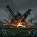 [Verse 1] The fields of Green Meadow rolled wide and still With banners snapping in the wind Men stood ready with shield and spear For the first great fight to begin For years the dragons ruled the sky And every battle ended the same Till a steam-scarred airship crossed the clouds The Baywhar Babe by name. [Verse 2] Donna held to the iron wheel While the boilers shook below David cursed in the engine room Where the dying fires burned low And Richard stood by the harpoon guns With Mark at the second rail Watching dark wings gather fast Like a thunder rolling gale. [Chorus] High above Green Meadow field Where the war horns cried below Steel and steam against the sky Where the wyvern riders rode And the soldiers swore the clouds caught flame From the guns of the Baywhar Babe Holding back the dragon’s horde So the free men could be brave. [Verse 3] The harpoons roared like thunder cracks Iron chains through scale and hide One by one the riders fell Spinning down the windy side The wyverns shrieked and wheeled away Their masters tumbling from the sky And hope began to stir below Where the waiting armies cried. [Verse 4] But pride runs hot in dragon men And soon the riders turned again Claw and fang through smoke and steam With screaming hate and iron grin They swarmed the ship from every side Till sky and sun were lost from sight And the Baywhar Babe was swallowed whole In a storm of wings and fight. [Chorus] High above Green Meadow field Where the war horns cried below Steel and steam against the sky Where the wyvern riders rode And the soldiers swore the clouds went black Round the battered Baywhar Babe Holding back the dragon’s horde So the free men could be brave. [Verse 5] The guns fell silent on the rails When the claws came crashing in Richard drew his battered blade And Mark stood back to back with him Steel rang wild on saddle mail While wings beat hard against the mast And blood ran down the deck boards slick As the sky war thundered past. [Verse 6] Donna fought against the rail With a broken harpoon spear Holding off the lunging beasts That clawed and shrieked around her there Till David climbed from the engine hold With a shattered steam pipe in his hand Burning iron and hissing fire Like lightning from the land. [Bridge] Steam screamed white across the deck Scalding wings and blinding eyes Wyverns shrieked and riders fell As David drove them from the skies Richard roared and Mark struck hard Donna turned the wheel again And the guns came back to life With thunder over wind. [Final Chorus] High above Green Meadow field Where the first free banners flew The wyvern riders broke and fled When the roaring harpoons blew And the armies cheered the clearing sky As the battered Baywhar Babe Still held the wind above the war And the day of freedom came.