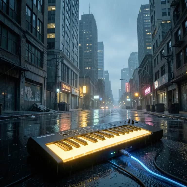 Shimmering 80s-inspired synth-pop, male vocals, steady mid-tempo groove. Tight, punchy drums lock with a warm, driving bass; bright poly synths carry the chords, with a glassy lead answering vocal phrases. Verses stay lean and intimate; chorus blooms with wide pads and stacked harmonies. Short bridge strips back to arpeggiated synths before a final, soaring hook.