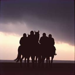 [Verse 1] Drums of thunder shake the ground, Cities burn, no peace is found, Brothers fighting, flags in flame, Endless sorrow, endless shame. [Chorus] The riders of our time are here, They bring us pain, they bring us fear, Their shadows fall across the land, No heart is safe, no soul can stand. [Verse 2] Silent shadow, unseen hand, Crosses borders, haunts the land, Breath is stolen, hearts grow weak, Tears unspoken, cries unique. [Chorus] The riders of our time are here, They bring us pain, they bring us fear, Their shadows fall across the land, No heart is safe, no soul can stand. [Verse 3] Empty tables, rising cost, Counting coins for what we’ve lost, Hunger hides in wealthy streets, Where despair and silence meet. [Chorus] The riders of our time are here, They bring us pain, they bring us fear, Their shadows fall across the land, No heart is safe, no soul can stand. [Verse 4] Cold reminders every day, Famous names now fade away, Violent echoes in the night, Reaper walks with no respite. [Bridge] Hear the warning, hear the sound, Four dark riders circle round, But we can change, we still have time, Only love can turn the tide, Together we can still survive. [Final Chorus - fade out] The riders of our time are here, They bring us pain, they bring us fear, Their shadows fall across the land, No heart is safe, no soul can stand. (The riders… the riders… the riders of our time…)