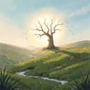 Warm fingerpicked acoustic guitar in Celtic-inspired fingerstyle, open tunings and ringing harmonics. Slow, breathing tempo; male vocals sit intimate and close, with subtle reverb suggesting distant hills. Soft drones and low guitar notes create a full, enveloping bed, with faint field-recorded nature sounds tucked low in the mix. Chorus swells slightly with stacked murmured harmonies and a gentle low whistle doubling the melody, then falls back to sparse, lullaby calm., fingerstyle, celtic