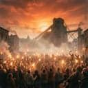 Energetic viking folk metal, drinking anthem, male choir chants, fiddles, flutes, heavy guitars, festival vibe