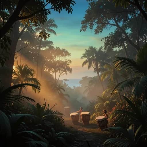 Tribal Caribbean rap song with powerful tribal drums, congas and percussion. Afro-Caribbean rhythm with dancehall groo