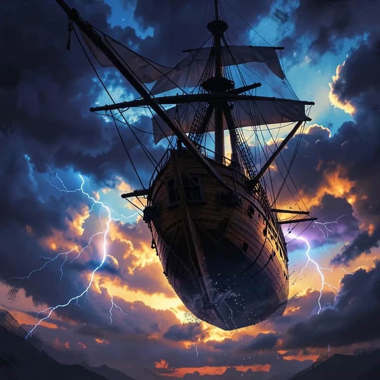 [Verse 1] The sky tore open, lightning split the clouds Wind slammed the deck, thunder screamed aloud The airship pitched, ropes whipped our hands We clung to the rails, hearts in the storm’s demands Richard braced hard, Mark shouted commands David gritted teeth, Donna prayed with folded hands We fought to steer through the roaring night Every gust a test, every spark a fright [Chorus (Anthemic / Refrain)] We’re tied to the storm, no ground in our sight The clouds crash like mountains in blackened light Let the wind take us, let the sky decide We fight to move forward, but can’t run or hide [Refrain / Chant] Tied to the storm! — tied to the storm! Hold the ropes! — hold the ropes! Push the wheel! — push the wheel! Pray to the skies! — pray to the skies! Thinking of Twosun, the hills, and our kin We’re tied to the storm, just hoping we’ll win Tied to the storm! Tied to the storm! We’ll survive — we’ll survive — we’ll survive the storm! [Verse 2] Sheets of rain cut through the lantern glow The propellers groaned and the rigging bowed low We shouted above the howl of the gale Praying our ship and our courage won’t fail The deck leans wild, the airship sways We’re pinned by the storm in a twisting haze Every roll of the hull could fling us away But we hold to the ropes, we won’t let it sway [Chorus (Anthemic / Refrain)] We’re tied to the storm, no ground in our sight The clouds crash like mountains in blackened light Let the wind take us, let the sky decide We fight to move forward, but can’t run or hide Tied to the storm! — tied to the storm! Hold the ropes! — hold the ropes! Push the wheel! — push the wheel! Pray to the skies! — pray to the skies! Thinking of Twosun, the hills, and our kin We’re tied to the storm, just hoping we’ll win [Verse 3] I see our friends trapped in Twosun below Fighting the Gnar while the cold winds blow The thought of them steels my shaking hands Gives me the strength to follow the captain’s commands Donna clings tight, Mark fights the wheel Richard leans in, refusing to kneel Every lightning strike lights the clouds on fire But our hearts push on, driven by desire [Chorus / Bridge (Anthemic / Refrain)] We’re tied to the storm, no ground in our sight The clouds crash like mountains in blackened light Let the wind take us, let the sky decide We fight to move forward, but can’t run or hide Tied to the storm! — tied to the storm! Hold the ropes! — hold the ropes! Push the wheel! — push the wheel! Pray to the skies! — pray to the skies! Thinking of Twosun, the hills, and our kin We’re tied to the storm, just hoping we’ll win [Verse 4 / Outro] The horizon may hide England in gray But we’ll sail through the tempest, we’ll find a way For friends in the hills and the home we must save We ride the storm’s fury, defy the sky’s rage We’re battered, we’re bruised, but our hearts still burn For the fight that awaits when the clouds turn Though the storm rages, we won’t let go The Strongcastle children soar on through the woe