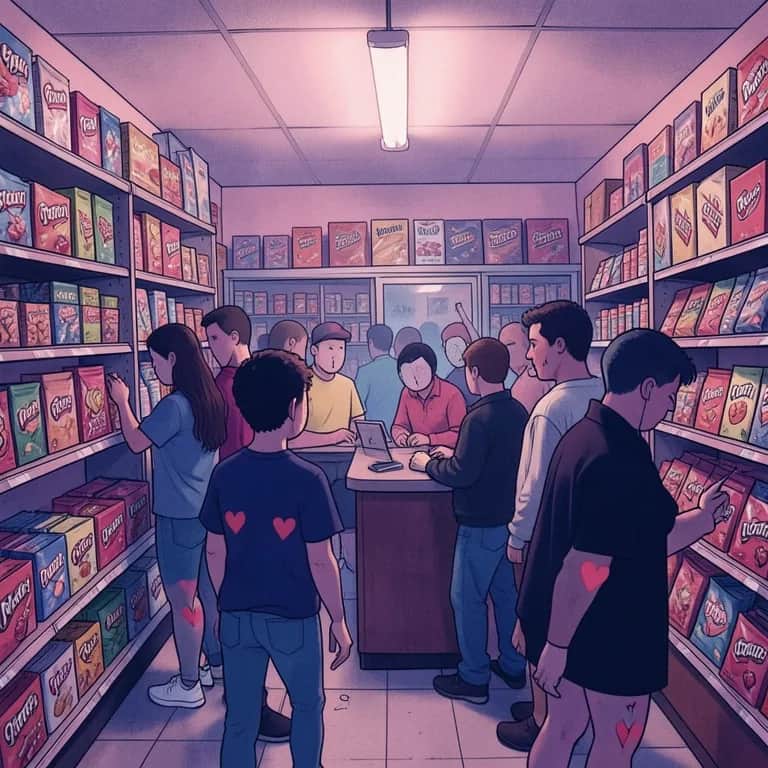 [Verse 1] Disconnected brain stem kid Purple hair and a safety pin grin Every sidewalk’s a stage They’re Shouting at clouds again Face like pin cushions Glitter Stick-and-poke hearts on their shins Arguing with parking signs And losing by a thin margin [Chorus] It’s a Tootsie Roll fight in the corner store line Two gays Same crush Same kind sugar on their minds Chewing on drama they can’t live without. Oh my god It’s tragic Oh my god It’s prime time Tootsie Roll fight in the fluorescent light Spinning in circles just to feel alive Laugh till I choke ‘cause I know I’m not their type. This confusion can’t decide where to pee… [Verse 2] They’re protesting over straws now “Why you gotta be so white?” Holding up a cardboard sign “Down with forks Bring back bites” Two gays in a candy aisle Debating who’s the sweetest mess “You’re the drama ” “No You’re drama” Then they both say “Yeah I guess” [Chorus] It’s a Tootsie Roll fight in the corner store line Two gays Same crush Same kind sugar on their minds Chewing on drama they can’t live without. Oh my god It’s tragic Oh my god It’s prime time Tootsie Roll fight in the fluorescent light Spinning in circles just to feel alive Laugh till I choke ‘cause I know I’m not their type. This confusion can’t decide where to pee… [Bridge] Are we friends Are we foes Are we sharing this 18” Tootsie Roll Are you into my shoes Or the way I stay broke? You say “pick a side” Why not?” Cotton candy pride In a parking lot (hey!) [Chorus] It’s a Tootsie Roll fight in the corner store line Two gays Same crush Same kind sugar on their minds Chewing on drama they can’t live without. Oh my god It’s tragic Oh my god It’s prime time Tootsie Roll fight in the fluorescent light Spinning in circles just to feel alive Laugh till I choke ‘cause I know I’m not their type. This confusion can’t decide where to pee…