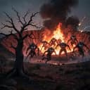 [Verse 1] Sky splits open in a blood-red seam Cornfields thrash like a twisted dream Engines dead in the one-lane road Every dog in town starts to howl and choke Black smoke dripping from a silent star Fireflies scatter from a fallen car We stare We freeze in the engine heat As the first one crawls on a dozen feet [Chorus] Hell from above They came They came for blood Teeth like daggers in the floodlight mud Hell from above Yellow eyes in the dust Tear our prayers from the church house rust Hell from above Hell from above [Verse 2] Old man Parker with his rusted gun Shaking hands Trying to count to one But the thing just laughs with a broken jaw Peels his chest like it’s made of straw Sirens wail from the sheriff’s truck Radio hisses Jams Then cuts Kids hide under mama’s bed Hear the claws on the roof Feel the boards bend [Chorus] Hell from above They came They came for blood Teeth like daggers in the floodlight mud Hell from above Yellow eyes in the dust Tear our prayers from the church house rust Hell from above Hell from above [Bridge] [Drums drop to half-time Guitars grind low] Barn doors slam But the walls breathe mold They carve through steel like it’s burning snow We light up crosses Gas And hay Still they crawl through the flame Melting skin away (oh God) [Chorus] Hell from above They came They came for blood Teeth like daggers in the floodlight mud Hell from above Yellow eyes in the dust Tear our names from the town sign crust Hell from above Hell from above [Outro] [All instruments crash Then stomp groove] Last porch light flickers Gutters run red We were Sunday quiet Now the fields are dead If you hear that crack in the midnight sky Lock your doors Let our small town die Hell from above…