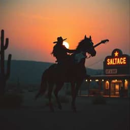 Rock outlaw, guitar electric, Male, violín, Old West atmosphere with a fast pace ,rock