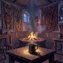 Gritty fantasy tavern cue: low strings and hurdy-gurdy drone under a stomping frame drum and clanking tankards; modal fiddle leads trade with a growling bass viol. Melody leans minor with folk ornamentation, shifting from brooding verses into raucous, chanting crowd hooks. Occasional war horn stabs and dulcimer accents suggest lurking danger beneath the drunken revelry.
