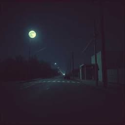 Eerie ambient music begins.A soft wind howls. Fade in to an empty street. No birds. No cars. No people.