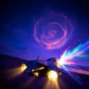 Shiny space-pop banger at mid-tempo, glittery synth arps and wide pads over a tight four-on-the-floor groove; female vocals floating on reverb in verses, then rushing forward in a stacked, chanty hook. Big sidechained bass, starburst risers into each chorus, and a playful, robotic vocal chop post-chorus that echoes the title.