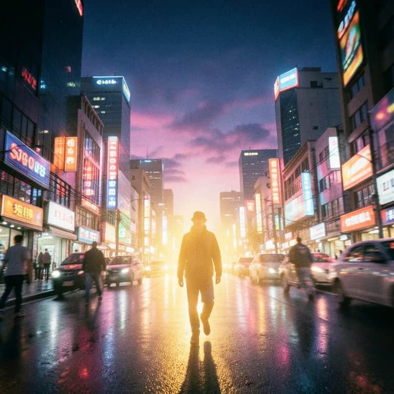 [Intro] [Requinto con mucho delay + synth brillante y espacial] Yeah… 밤의 불빛 [bam-e bulbit]— Luces de la noche. Caminando por Seúl, no esperaba que el destino me tuviera preparada una jugada… [Verse 1] [requinto tumbado + 808] Caminando solo por la avenida, buscando cosas que le den sentido a la vida. La noche tranquila me envolvía, pero todo cambió en un instante: por accidente me topé de frente con una linda chica que me tocó el corazón. Entre toda la gente, tu belleza me hipnotizó, te vi y sentí que el destino habló. [Verse 2] [Rap tumbado - ritmo más marcado]. [requinto tumbado + 808] Entre calles sombrías miré tu mirada, que nunca olvidaré. Mi corazón empezó a correr cuando de cerca te pude ver. Flow latino bajo el neón, tú robaste mi atención; desde ese primer segundo te quedaste en mi canción. [PRE-CHORUS] [synth grande estilo estadio] (Melódico K-Pop - voz suave con reverb) 너를 처음 본 순간 (neoreul cheoeum bon sungan) Cuando te vi por primera vez... 시간이 멈춘 것 같아 (shigan-i meomchun geot gata) Siento que el tiempo se detuvo hoy. [Chorus] (Hook pegajoso - mezcla de requinto y bajo eléctrico) 사랑해 너의 눈빛 (saranghae neoui nunbit) Amo esa luz en tu mirar. En las calles de Seúl te encontré y mi mundo empezó a girar. Bajo luces de neón te vi y mi corazón dijo en corto que sí. 사랑해, 사랑해 (saranghae, saranghae) No te quiero perder. [Verse 3] (Rap melódico - estilo relajado) Tal vez fue suerte o el destino cruzarnos justo en el camino. Tu sonrisa iluminó todo el barrio y mi latido. Si la noche nos vuelve a juntar, esta vez sí te voy a hablar, porque un amor a primera vista no se deja escapar. [Bridge] [voces suaves coreanas + beat drop] [Parte K-Pop - atmósfera de ensueño]. 너와 걷고 싶어 (neowa geotgo sipeo) Quiero caminar contigo... 이 밤이 끝나기 전에 (i bam-i kkeutnagi jone) Antes de que termine la noche. [Final Chorus] (Clímax con toda la instrumentación) 사랑해 너의 눈빛 (saranghae neoui nunbit) Amo esa luz en tu mirar. En las calles de Seúl te encontré y el destino nos hizo hablar. Bajo luces de neón te vi y mi corazón dijo que sí. 사랑해, 사랑해 Saranghae… Quédate aquí conmigo.... Puro corrido K-tumbado...