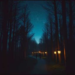 [Intro] Underneath the silent sky, On a lonely curving trail, Night whispers softly by, Tales the darkness dares to tell. [Verse 1] Left a fence that shadows cling, Right the meadow softly sighs, Concrete gleams with gentle gleam, Lighting up the midnight skies. [Pre-Chorus] Everything feels still and far, Deep blue velvet wrapping tight, A quiet fear within my star, Where the unknown meets the night. [Chorus] Oh, this lonely nighttime walk, Where no voices break the hush, Step by step, a silent talk, In the hush, in the dusk. [Bridge] Lights off the secret scenes, Darkness whispers in the air, A ghostly dance of dreams, In the night’s cool, quiet stare. [Outro] As dawn awaits unseen, Hushed encounters fade away, Behind shadows and the sheen, Lies the promise of a new day.