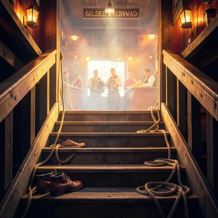 (Verse 1) We’ve been ninety days on a diet of rope and the steam of a salty dog With a Captain who thinks a holiday is a double-shift in the fog. But the lookout spotted the harbor lights and the pier-head’s looking sweet And I’ve got a itch in my sailor’s soul and a blister on my feet. So scrub the grime from your fingernails and borrow a cleaner shirt We’re heading down to the Gilded Mermaid to wash away the dirt. (Chorus) So it’s up the stairs and mind the step, and mind the Madame’s eye She’ll take your silver, take your gold, and leave your pockets dry. There’s a girl with a wink like a cannon-flash and a laugh like a rolling drum She’ll treat you like a Commodore 'til you’ve run out of the rum. So heave away your dignity, boys, and leave it at the door The fleet is in and the fleet is drunk and we’re heading back for more. (Verse 2) There’s Big-Toothed Sal in the corner booth, she’s a-looking for a mate She’s got a grip like a grappling hook and a temper like the state. And Bonnie Kate has a velvet dress that’s seen a better year But she’ll tell you that you’re handsome, boys, for the price of a pint of beer. The floorboards creak like a rotting hull and the ceiling’s hanging low But it’s better than a hammock, lads, where the freezing breezes blow. (Chorus) So it’s up the stairs and mind the step, and mind the Madame’s eye She’ll take your silver, take your gold, and leave your pockets dry. There’s a girl with a wink like a cannon-flash and a laugh like a rolling drum She’ll treat you like a Commodore 'til you’ve run out of the rum. So heave away your dignity, boys, and leave it at the door The fleet is in and the fleet is drunk and we’re heading back for more. (Verse 3) Old Barney spent his pittance on a girl named Fancy Rose But he woke up in the gutter with a hole inside his hose. She took his boots and she took his watch and she took his tobacco tin And left him with a pounding head and a very toothless grin. But don't you worry about the cost or the morning’s heavy head It’s better being fleeced on land than a-floating with the dead. (Chorus) So it’s up the stairs and mind the step, and mind the Madame’s eye She’ll take your silver, take your gold, and leave your pockets dry. There’s a girl with a wink like a cannon-flash and a laugh like a rolling drum She’ll treat you like a Commodore 'til you’ve run out of the rum. So heave away your dignity, boys, and leave it at the door The fleet is in and the fleet is drunk and we’re heading back for more. (Outro) Where’s my boot? Where’s my pay? I think I’m going. The other way. Mind the step. Watch the door. See you in a month. Or four.