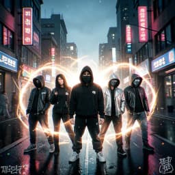 rap, Glitch-hop / brostep hybrid under male group vocals: distorted 808 subs, metallic trap hats, bit-crushed snares, and aggressive screech bass drops. Verses in double-time chopper rap with tight unison stabs; hook explodes into chant-style gang vocals, detuned synth leads, and crowd-shout ad-libs. Mid-track breakdown strips to grimy bass and filtered vocal chops before a final tempo-pushed drop. High-energy mix with saturated vocals, wide stereo glitches, and heavy sidechain pump., metal, brostep, k-pop, glitch