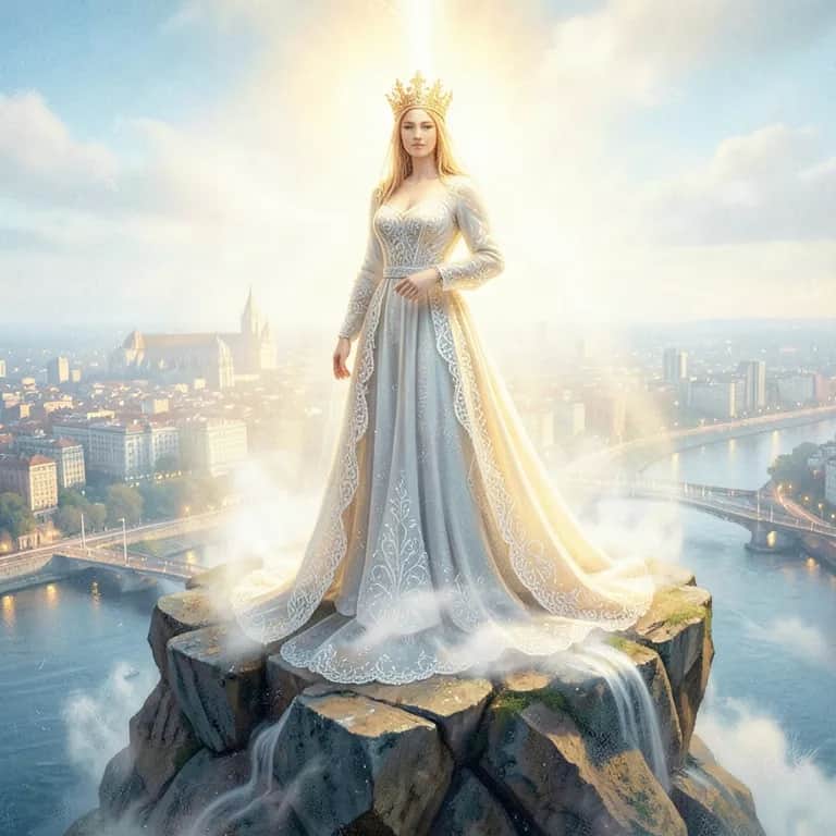 Song about a the lady in White , came from heaven to save the world from its own demise. she weeps for the weak, and shelters the infirm, and takes away your pain. She’s your mother, your sister and not your lover, yet she loves you deeply. She is your Queen. The Queen of Portugal, the Queen of Heaven