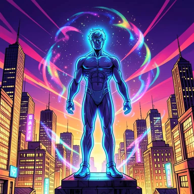 [Intro] Neon lights, shining bright, a guardian in the night Colorful flames, wild and free, a spectral sight Jasper stands, a city’s shield, brave and bold In the glow of cosmic dreams, his story told [Verse 1] In a world of chaos, in the shadows' embrace Emerges a figure, adorned with radiant grace Horns of rainbow, twisting high, touching the sky Eyes that pierce the darkness, no fear in his stare [Pre-Chorus] Guardian of dreams, protector unseen Fighting through the dark, in the glow of neon beams He’s the spirit of the night, fierce and serene Jasper, the guardian, living his dream [Chorus] Light up the night, with colors so bright Jasper stands tall, in the luminous fight Guardian of hope, in the urban glow Leading the way, wherever we go [Bridge] In the pulse of the city, in every heartbeat He's the spirit within that makes life complete Rainbow flames burning, fiercely alive In the city’s soul, watch him thrive [Outro] So here’s to the guardian, bold and bright Lighting up our world, through the darkness of night Jasper’s the name, in the neon rain A beacon of hope, breaking every chain