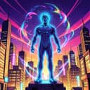 Electronic, neon fantasy, vibrant synths, energetic beats