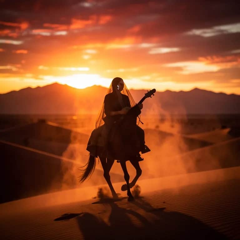 Upbeat country Western outlaw folk with a fiery, rebellious mood, acoustic guitar, country female vocals Indian flute