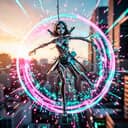 [Intro] Yeah, she's a ricochet girl Bouncing off the world, yeah [Verse 1] Robust and splashy, she's a wonder to see Guns blazing, she's breaking free Shooting star, velocity high No one can catch her flies by Target locked, she’s on her way Skipping hoops, she’s ready to play Water flowing, her spirit so free In her own world, she loves to be [Pre-Chorus] Model in motion, fashionable and bold Artistic edge, her story's told Lipstick fierce, making her mark Walking the streets, igniting the dark [Chorus] Ricochet girl, breaking through the noise She’s got the fire, she’s got the voice Paris to Italy, she's on the run Loving the life, having fun Ricochet girl, no one’s the same Shining in her own name From the city lights to the midnight wine She’s the star that will shine