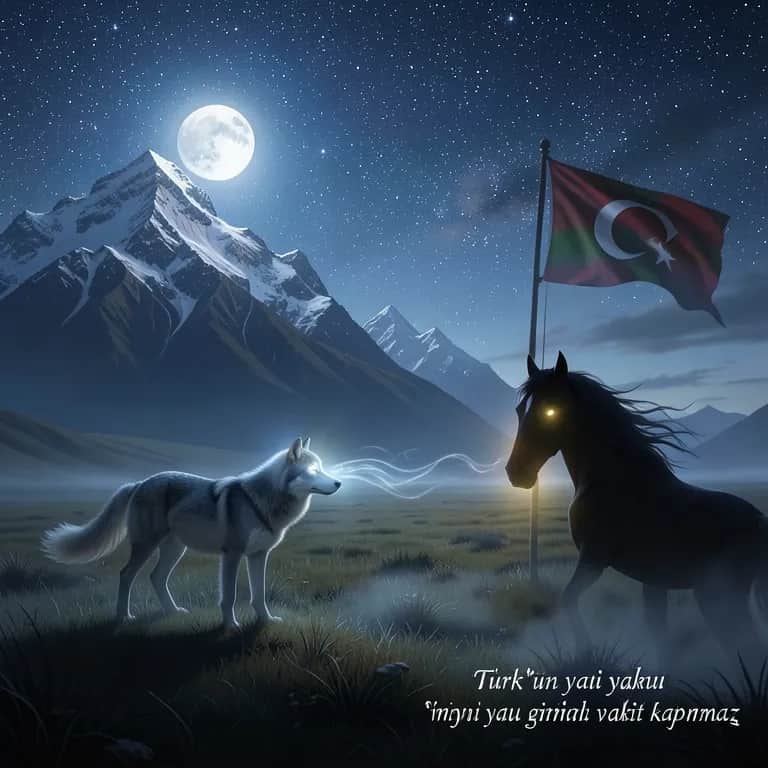 Bozkırın rüzgârı yüzüme vurur, Gök kubbe altında ant içerim. Tanrı Dağı’ndan kopan bir ses var, O sesle ben yeniden dirilirim. Kurt ulur geceye, dağlar uyanır, Atların nal sesi göğe dayanır. Bir damla kanda bin yıllık yemin, Türk’ün yolu hiçbir vakit kapanmaz. Bozkurt yürür karanlığa, Yol gösterir ay ışığı. Tanrı Dağı şahidimiz, Bozkır bizim varlığımız. Kırılır zincir, yıkılır duvar, Tarihin içinden bir millet doğar. Adımız rüzgârda, izimiz taşta, Türk’ün ateşi hiç sönmez başta. Gök bayrağım dalgalanır ufukta, Yemin ettik atalar huzurunda. Ne fırtına söndürür bu ateşi, Ne karanlık boğar bozkurt sesini. Bozkurt yürür karanlığa, Yol gösterir ay ışığı. Tanrı Dağı şahidimiz, Bozkır bizim varlığımız. Kıyamete kadar sürer bu yol, Gökte ay, yerde demirden kol. Bir millet var küllerinden doğan, Adı Türk’tür, bozkır onun otağı.