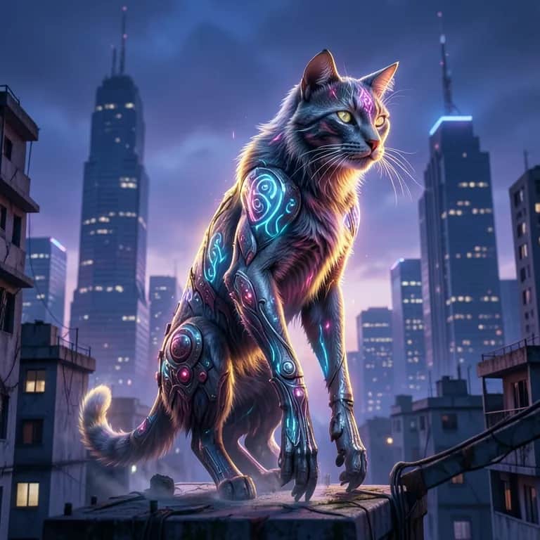 [Intro] Waking from a skyline dream, neon in her eyes Claws of fate, she cuts through glassy skies [Verse] She moves like thunder sifting through a velvet dawn Red hair blazing trails where the city used to yawning on Ears twitch to secrets only night could keep Tail a compass swinging where the distant sirens sleep Leopard skin whispers under the lightest breath In a pose that says she’ll break the rules of gravity’s death One hand forward, whispering to the street’s hushed hum The other guards the heartbeat of a city on the run [Chorus] Run, cat of the concrete, rise and redefine the night Fire in your fur, you blaze through wrong into the right Run, cat of the concrete, fearless in your stance Monument to a myth where power learns to dance [Verse] She dodges shadows like a streetlamp catching flame Every step a rumor turning into a flame Arm bands catch the chorus of a distant drum Ankles whisper echoes of a rhythm yet to come Her silhouette etches stories on the pink-lit dawn A heroine behind the glare, yet never gone She crouches lower, then erupts in silver sound Leaping past the doubts that draped the crowded ground [Chorus] Run, cat of the concrete, rise and redefine the night Fire in your fur, you blaze through wrong into the right Run, cat of the concrete, fearless in your stance Monument to a myth where power learns to dance [Bridge] In the quiet between sirens, she names her own fate Not for mercy, not for medals, but for the truth she creates Her breath paints weather on the glassy morning air A vow in the rhythm of danger and care She learns to bend gravity with a purr and a smile And every step she takes stretches the miles [Chorus] Run, cat of the concrete, rise and redefine the night Fire in your fur, you blaze through wrong into the right Run, cat of the concrete, fearless in your stance Monument to a myth where power learns to dance [Outro] Soar through the pink horizon, let the city hear your name A silhouette of courage, wild and brave, untamed.