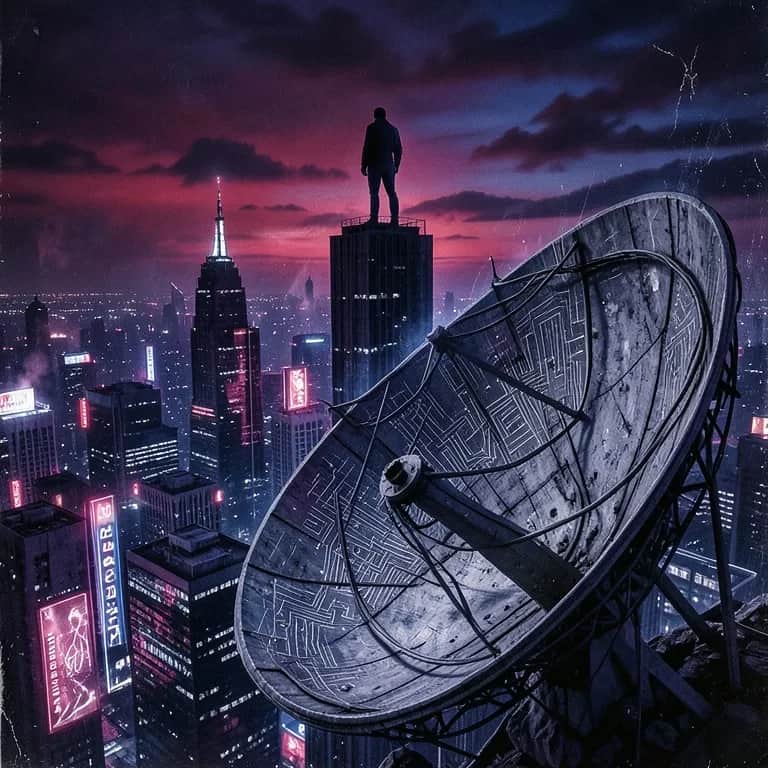 Cinematic sci-fi rock, atmospheric electronic layers, powerful male vocals, orchestral builds, futuristic dark tone