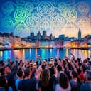 Eurodance viral hooks, violin, high-energy danceable-rhythms, Celtic singalong music, male, female, feel-good party vibe