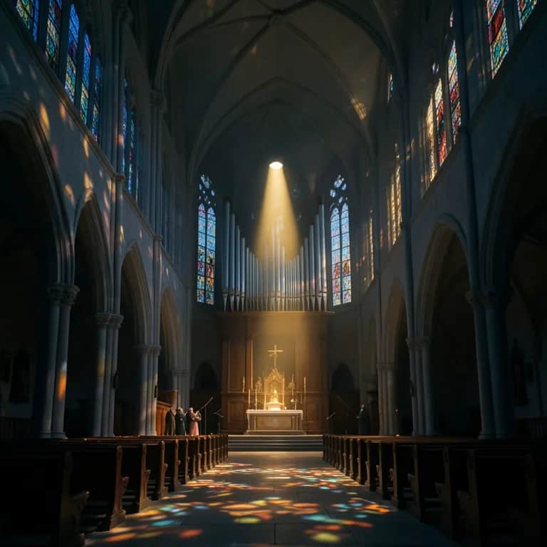 Choir, drums, piano, strings, bass, organ, bells, male