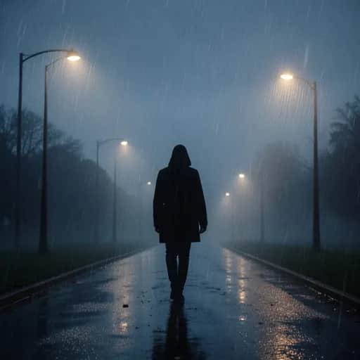 [Intro] Whispered echoes in the silent night, Broken shadows fade from sight. A heavy heart, a weary soul, Lost in the dark, no longer whole. [Verse 1] Stumbling through a storm of doubt, Every step, a silent scream out. Life's been a series of hard knocks, Lost my way in empty blocks. [Pre-Chorus] Can't find the strength to stand, Fighting just to understand. A mind that's tired and worn, Longing for a new dawn. [Chorus] I'm just a shadow in the rain, Caught in echoes of pain. Fading into the night, Hard to see the light. [Instrumental Bridge] (Orchestra swelling with mournful strings, soft piano, and a distant cello) [Verse 2] Memories creep, haunting my mind, Moments of hope I struggle to find. Falling further into despair, Questioning if anyone’s there. [Pre-Chorus] The silence screams so loud, Lost within this gloomy cloud. Holding on by a thread, Longing for what’s dead. [Chorus] I'm just a shadow in the rain, Caught in echoes of pain. Fading into the night, Hard to see the light. [Outro] Fading further, losing grip, Life’s a sinking ship. Melancholy strings cry in tune, Beneath the pale, cold moon.