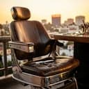 rap, West Coast bounce with a glossy trap sheen, male vocals, swung drums and deep subs under hazy synth pads. Verses tight and percussive, hook chanted with layered gang vocals and ad-libs. Short drops between lines for barber name shout-outs, occasional vinyl stop for emphasis. Mix keeps the vocal crisp like a razor edge, roomy reverb on key words for swagger., barbershop, clean