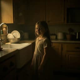 Ich steh auf einem Stuhl in einer viel zu großen Küche, Der Abwasch glänzt, als wär ich alt genug, um all das hier zu tragen, ohne zu fragen. Ich wiege meine Geschwister in den Schlaf, zähl ihre Atemzüge wie Versprechen. Ich spiel die Mutter, die ich nie sein wollte, und lerne früh, mich selbst zu brechen. Am Tag bin ich leise, funktionier ohne Klang. Wenn ich falle, sag ich niemandem, wann. Ich wollte nur ein Kind sein, mit schmutzigen Knien im Licht. Doch ich trag viel zu schwere Worte auf einem viel zu kleinen Gesicht. Biergeruch mischt sich mit Rauch in der Stille, Scham liegt wie Staub auf mir. Ich wollte nur ein Kind sein, doch keiner sieht mich hier. Die Schritte im Flur sind lauter als mein Herz, ich kenn ihr Gewicht, bevor sie stehen. Der Geruch kommt vor dem Schatten, und ich lerne, aus mir rauszugehen. Ich lieg ganz still in meinem Körper, doch irgendwo bin ich nicht mehr da. Er ist der Gute, ich bin schwierig, und glaub es irgendwann sogar. Am Morgen wasch ich die Nacht von meiner Haut. Zieh mir ein Lächeln an, das keiner durchschaut. Ich wollte nur ein Kind sein, mit schmutzigen Knien im Licht. Doch ich trag viel zu schwere Worte auf einem viel zu kleinen Gesicht. Biergeruch mischt sich mit Rauch in der Stille, Scham liegt wie Staub auf mir. Ich wollte nur ein Kind sein, doch keiner sieht mich hier. Manchmal spür ich tief unter Splittern noch etwas, das nicht zerbricht. Ein leiser Rest von mir flüstert: Du bist nicht das, was man über dich spricht. Doch laut ist nur die Dunkelheit, und stark sein heißt hier schweigen. Ich halte durch bis morgen früh, und lerne weiter, mich zu neigen. Ich wollte nur ein Kind sein, nicht stark und nicht perfekt. Nicht voller Schuld für Dinge, die kein Kind je trägt und deckt. Biergeruch mischt sich mit Rauch in der Stille, Scham atmet mit mir ein. Ich wollte nur ein Kind sein … und weiß nicht, wie das geht, ein Kind zu sein.